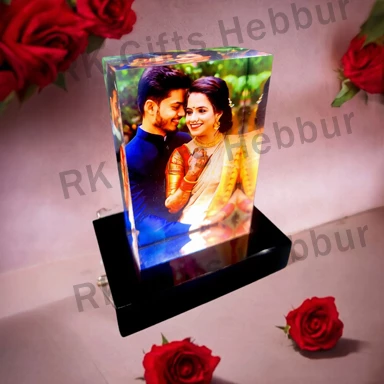 Customized LED Acrylic 3D Photo Cube – Premium Crystal Memory Lamp (2.5x6x10 cm) | Personalized Gift | RK Gifts Hebbur