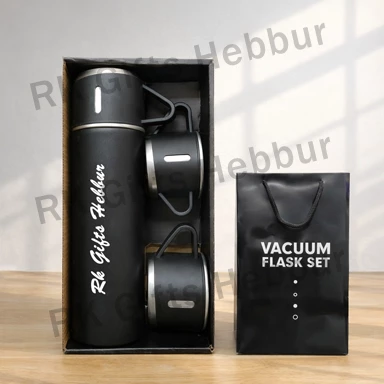 Customized Black Vacuum Flask Gift Set with 3 Cups & Bag – 12 Hours Hot & Cold | Premium Corporate & Personal Gift
