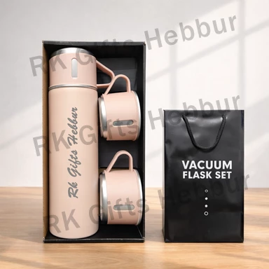 Customized Peach Vacuum Flask Gift Set with 3 Cups & Bag – 12 Hours Hot & Cold | Elegant Personal & Corporate Gift