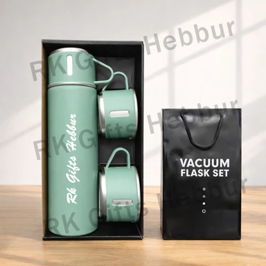 Customized Green Vacuum Flask Gift Set with 3 Cups & Bag – 12 Hours Hot & Cold | Stylish Personal & Corporate Gift