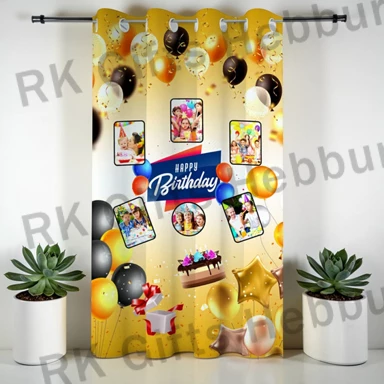 Customized Birthday Photo Window Curtain – Multi Photo Golden Theme Curtain | Personalized Home Decor RK Gifts Hebbur