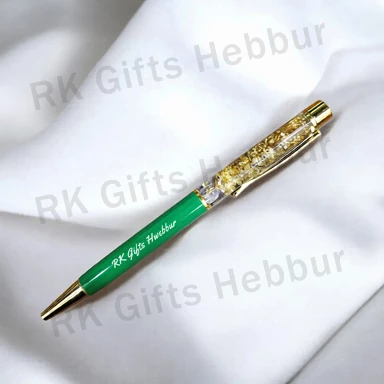 Personalized Green Crystal Gold Laser Engraved Pen – Customized Name Premium Designer Pen Gift for Office and Special Occasions