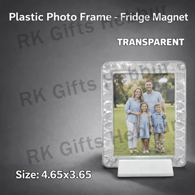 Customized Transparent Plastic Photo Frame Fridge Magnet (4.65×3.65 Inch) – Table Stand & Fridge Frame | Personalized Gift