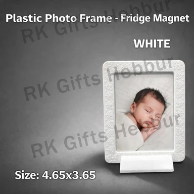 Customized White Plastic Photo Frame Fridge Magnet (4.65×3.65 Inch)–Table Stand & Fridge Frame | Personalized Gift