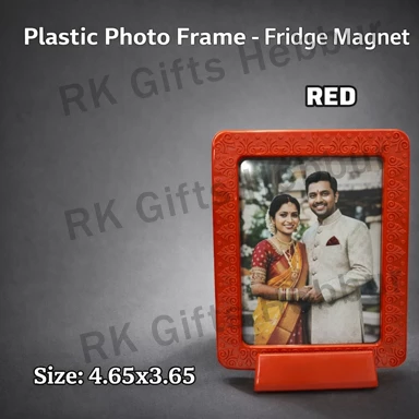 Customized Red Plastic Photo Frame Fridge Magnet (4.65×3.65 Inch)–Table Stand & Fridge Frame | Personalized Gift