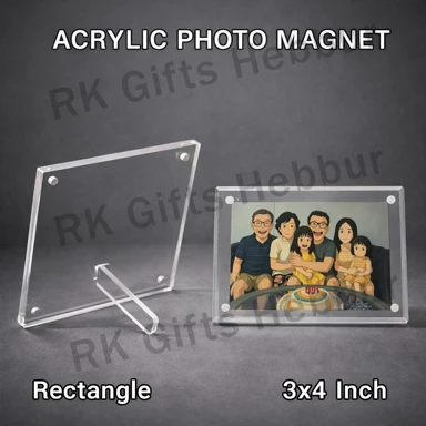Customized Acrylic Photo Magnet Rectangle (3×4 Inch) – Fridge Magnet & Table Stand | Personalized Gift & Memory Frame