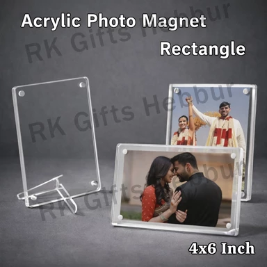 Customized Acrylic Photo Magnet Rectangle (6×8 Inch) – Fridge Magnet & Table Stand | Large Personalized Photo Frame Gift