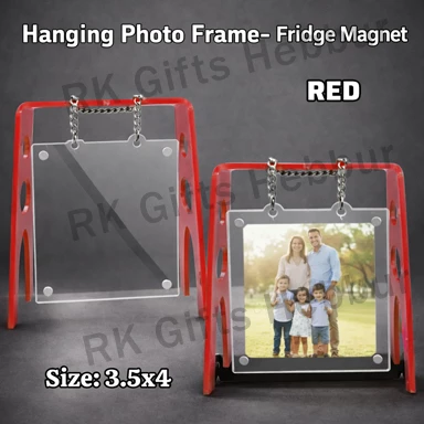 Customized Hanging Photo Frame Fridge Magnet Red (3.5×4 Inch) – Hanging & Magnetic Photo Frame | Personalized Gift