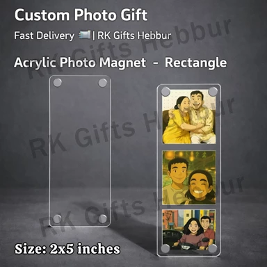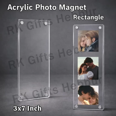 Customized Acrylic Photo Magnet Rectangle (3×7 Inch) – Fridge Magnet & Table Stand | Multi Photo Personalized Gift