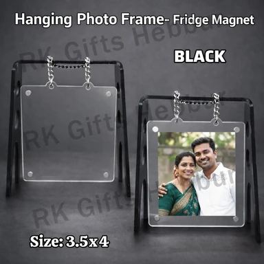 Customized Hanging Photo Frame Fridge Magnet Black (3.5×4 Inch) – Hanging & Magnetic Photo Frame | Personalized Gift