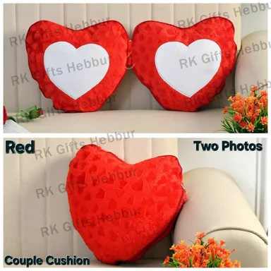 Customized Couple Cushion with 2 Photos Red – Personalized Love Pillow Gift for Couples, Anniversary and Special Memories