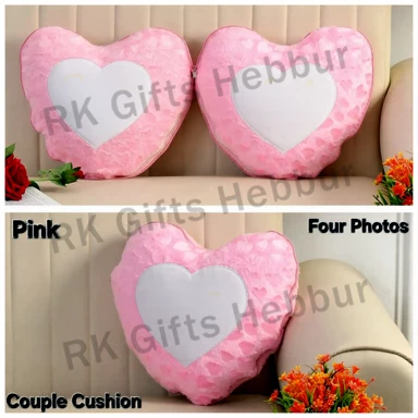 Customized Couple Cushion with 4 Photos Pink – Personalized Love Pillow Gift for Couples, Anniversary and Special Memories