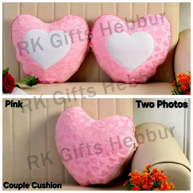 Customized Couple Cushion with 2 Photos Pink – Personalized Love Pillow Gift for Couples, Anniversary and Special Memories