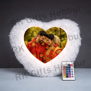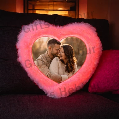 Customized LED Remote Heart Cushion with Photo – Color Changing Light Up Pillow for Couples, Romantic Gifts & Home Decor
