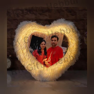 Customized Yellow LED Heart Cushion with Photo – Warm Light Up Romantic Pillow with Battery for Couples & Home Decor