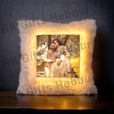 Satin Moon LED Light Cushion 16×16 | Customized Photo Glowing Pillow Gift | Romantic Couple & Family Memory Cushion | RK Gifts Hebbur