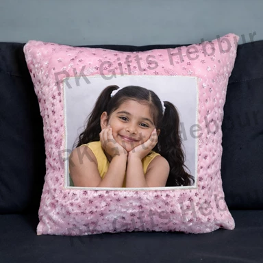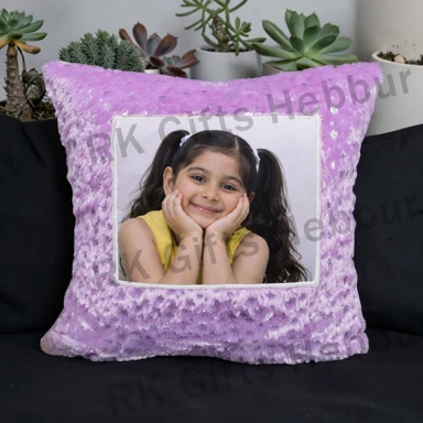 Customized Foil Square Cushion with Photo – Purple Shiny Pillow