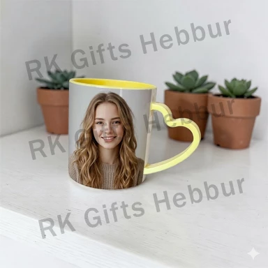 Polymer Yellow Heart Handle Mug – Customized Photo Coffee Mug Gift for Couples and Special Memories