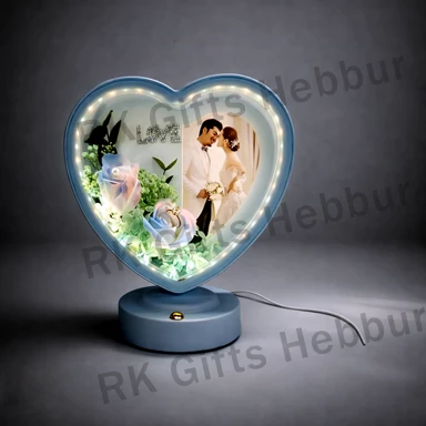 LED Flower Heart Photo Frame Blue–Customized Romantic LED Frame for Couples with Soft Glow Light