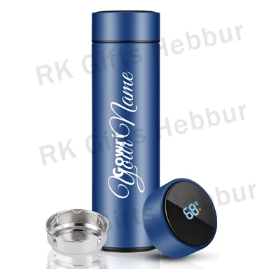 Temperature Display Bottle 500 ml Blue – Customized Photo Smart LED Water Bottle for Hot and Cold Drinks, Travel and Daily Use