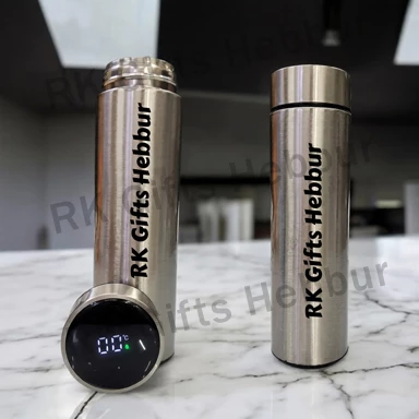 Temperature Display Bottle 500 ml Silver – Customized Photo Smart LED Water Bottle for Hot and Cold Drinks, Travel and Daily Use