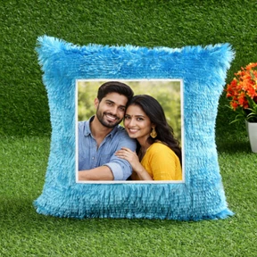 Fur Square Sky Blue Cushion Big – Soft Furry Pillow for Stylish Home Decor, Couples and Gift Purpose