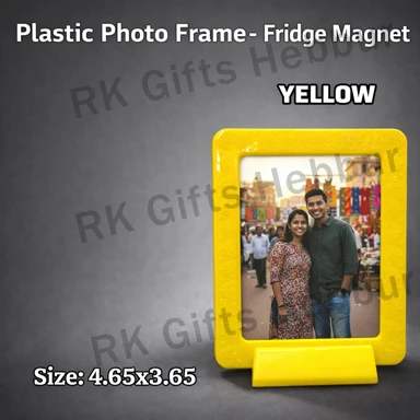 Customized Yellow Plastic Photo Frame Fridge Magnet (4.65×3.65 Inch) – Table Stand & Fridge Frame | Personalized Gift