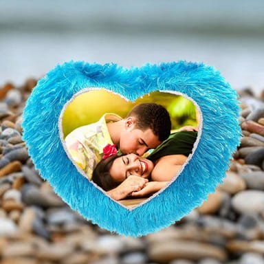 This Sky-Blue Mini Heart-Shaped Photo Pillow is not just a pillow —