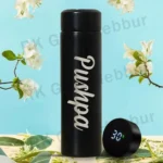 🔥 Customized Name Temperature Display Bottle 750ML | Smart LED Water Bottle with Laser Engraving | Premium Black Metal Bottle